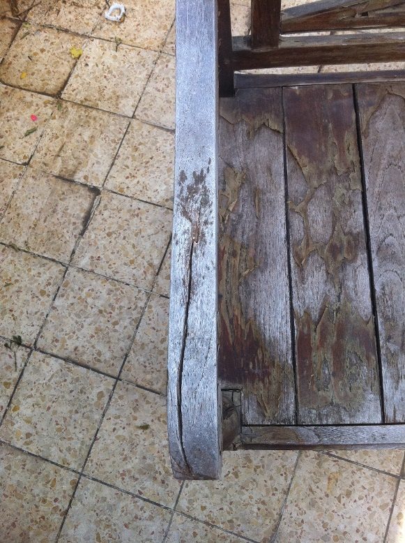 לאחר עבודה מאומצת ומלאת שבבים של קילוף השכבה העליונה והישנה של העץ הישן והפגום נתגלה יופיו והדרו של הספסל.