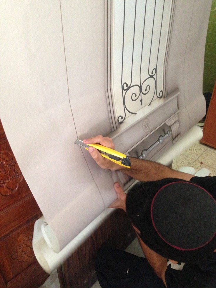 להלן הכלים ותהליך הדבקת הטפט בדלת: